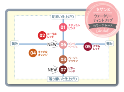 「06ピンクベージュ」と「07ビターレッド」